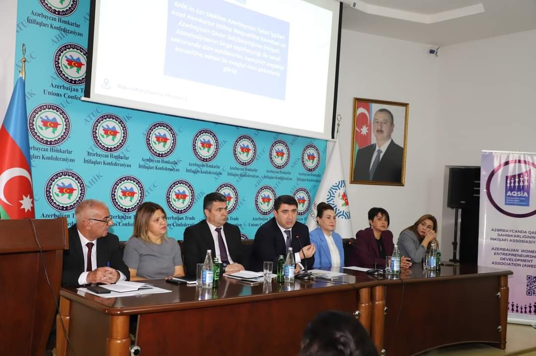 AQSİA-nın İdarə Heyətinin sədri Səkinə Babayeva rəhbərlik etdiyi qurumun fəaliyyəti barədə məlumat verib. O, özəl sektorda çalışan və sahibkarlıq fəaliyyəti ilə məşğul olan qadınların üzləşdiyi çətinliklər, onların həlli yolları, qadın sahibkarlığının inkişafı istiqamətində meydana çıxan problemlərə toxunaraq bu sahədə həmkarlar ittifaqı təşkilatlarının təsis edilməsinin vacibliyini vurğulayıb.