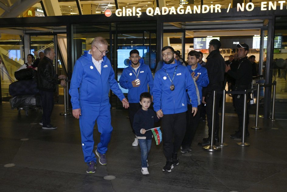 AZƏRTAC xəbər verir ki, yığma üzvlərini Heydər Əliyev Beynəlxalq Aeroportunda Azərbaycan Güləş Federasiyasının nümayəndələri, media mənsubları, azarkeşlər və idmançıların yaxınları qarşılayıblar.