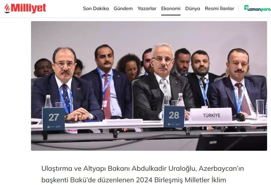 Türkiyənin “Milliyet” qəzeti oxucularına ölkənin nəqliyyat və infrastruktur naziri Əbdülkadir Uraloğlunun Bakıda keçirilən BMT-nin İqlim Dəyişmələri üzrə Çərçivə Konvensiyasının Tərəflər Konfransının 29-cu sessiyasında (COP29) iştirakı ilə bağlı məlumat verib.