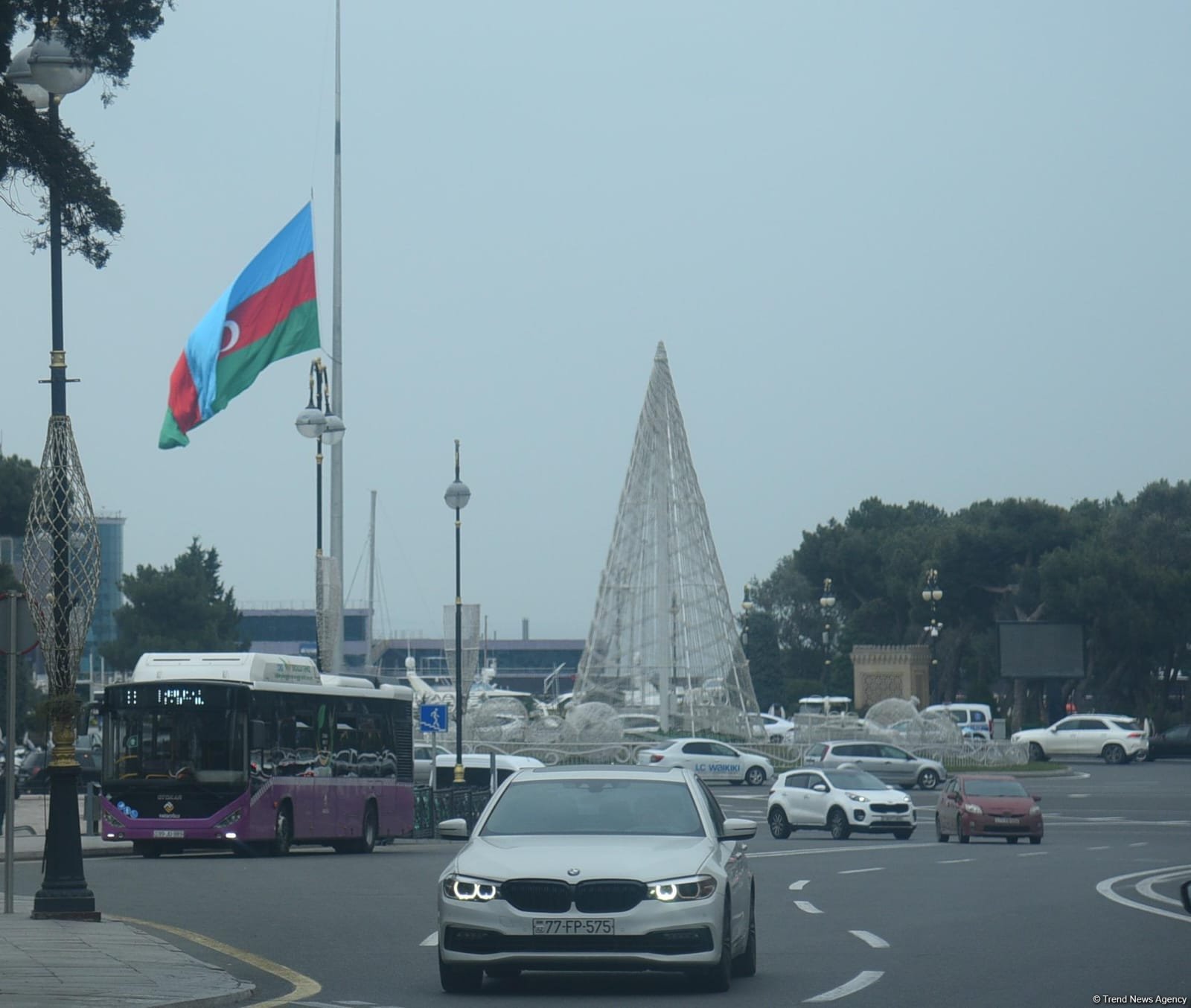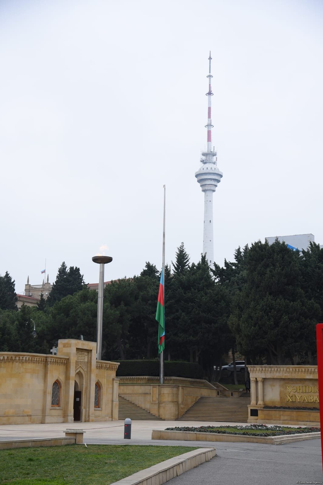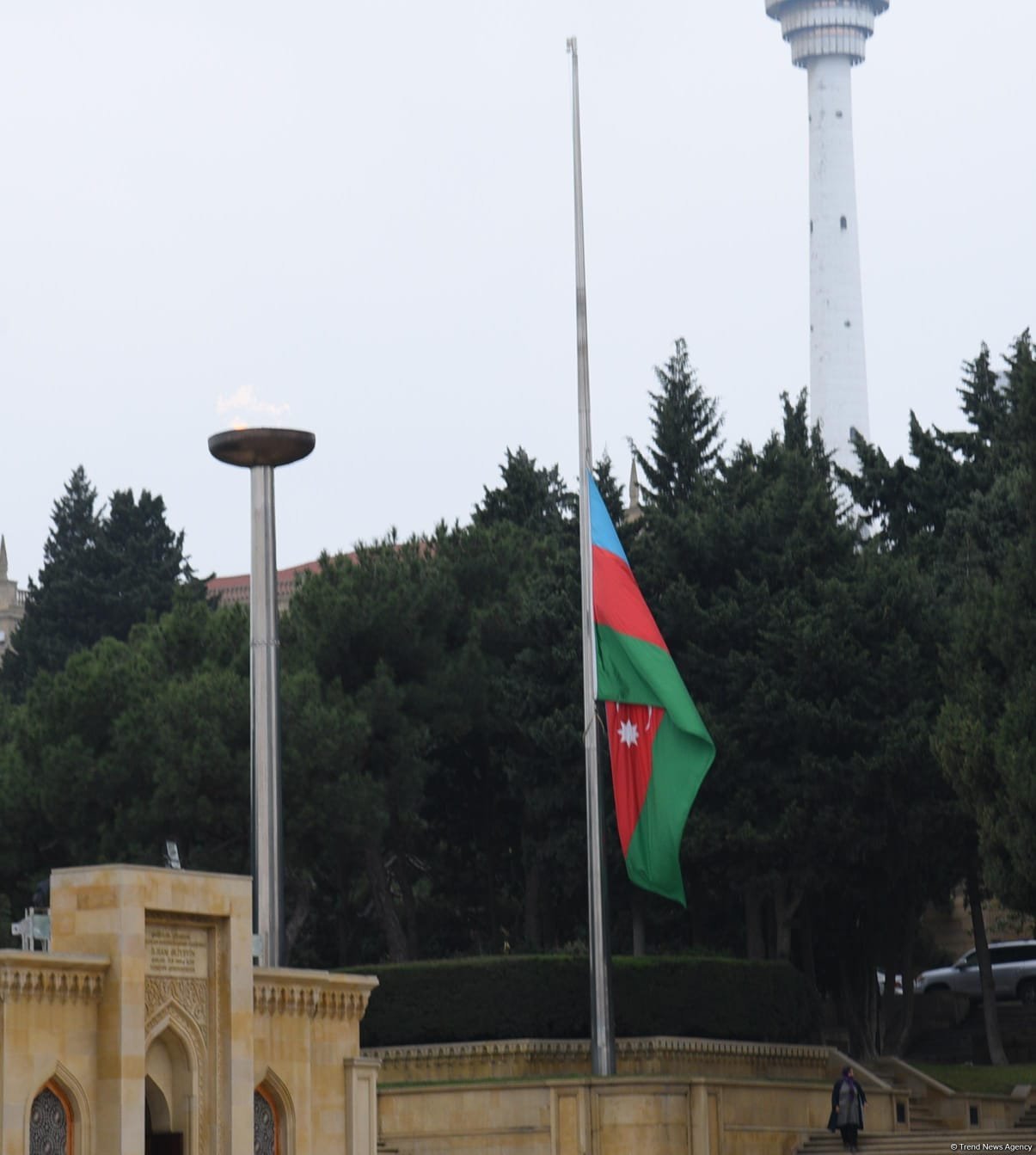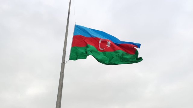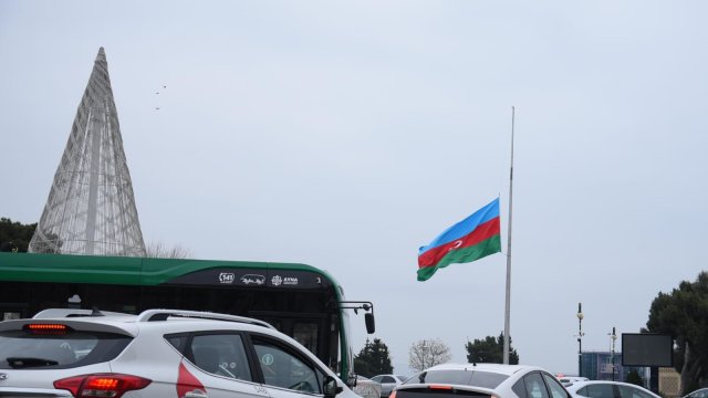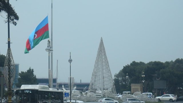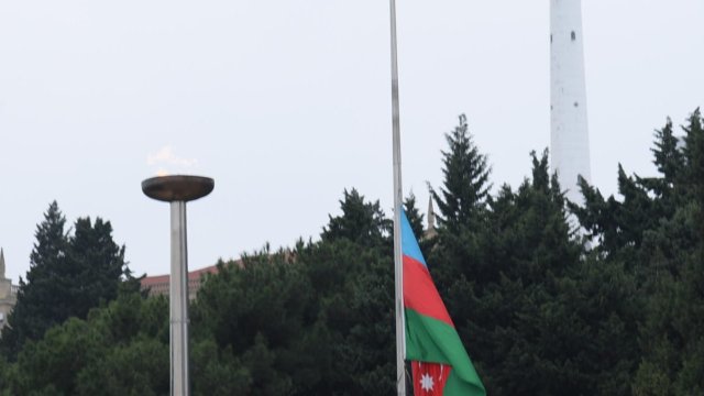 Trend-in əməkdaşı Bakıda bayraqların yarıyadək endirilməsini kamerasının yaddaşına köçürüb.