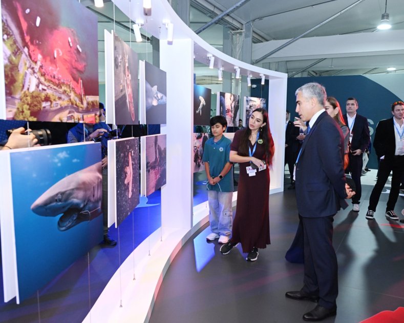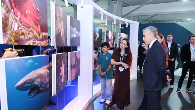 FINS Təşəbbüsü sərgisi COP29 məkanında və Dənizkənarı Milli Parkında təşkil edilib: stendlərdəki fotoşəkillər balinalar və delfinlər kimi sualtı dünyasının sakinləri haqqında məlumat verirdi.