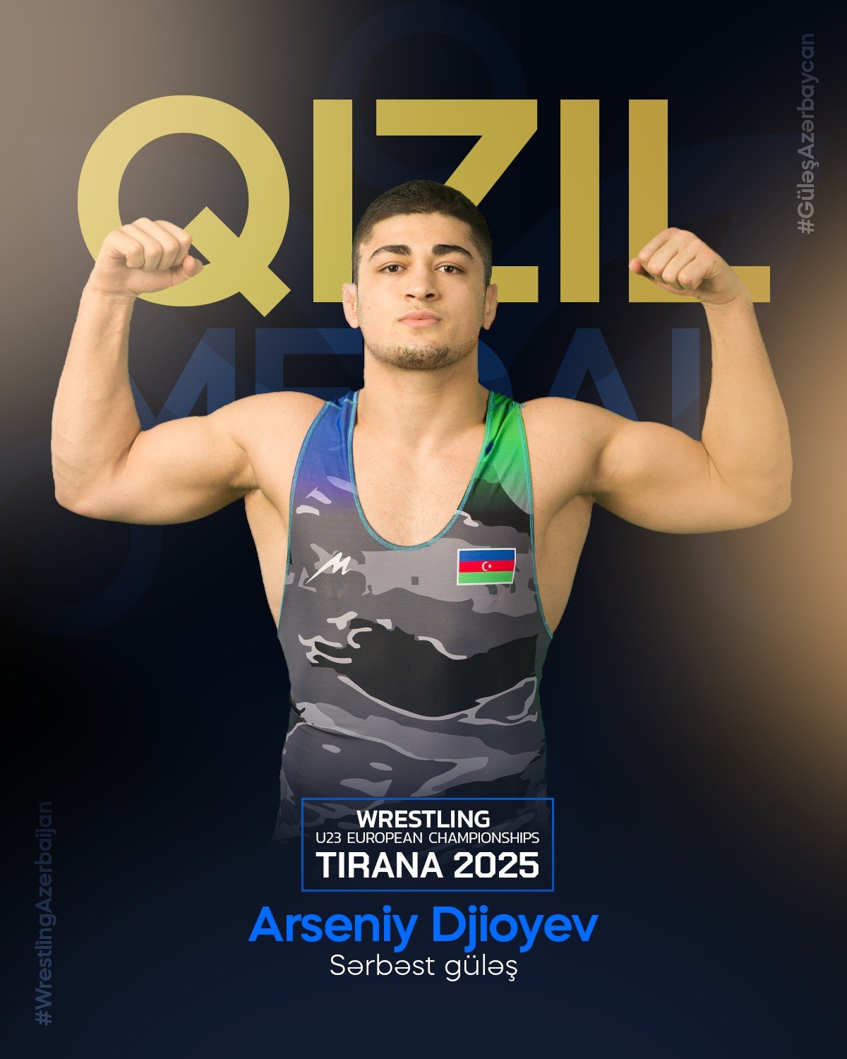 Azərbaycan sərbəst güləşçisi Arseniy Djioyev Albaniyanın paytaxtı Tiranada keçirilən U-23 Avropa çempionatında qızıl medal qazanıb.