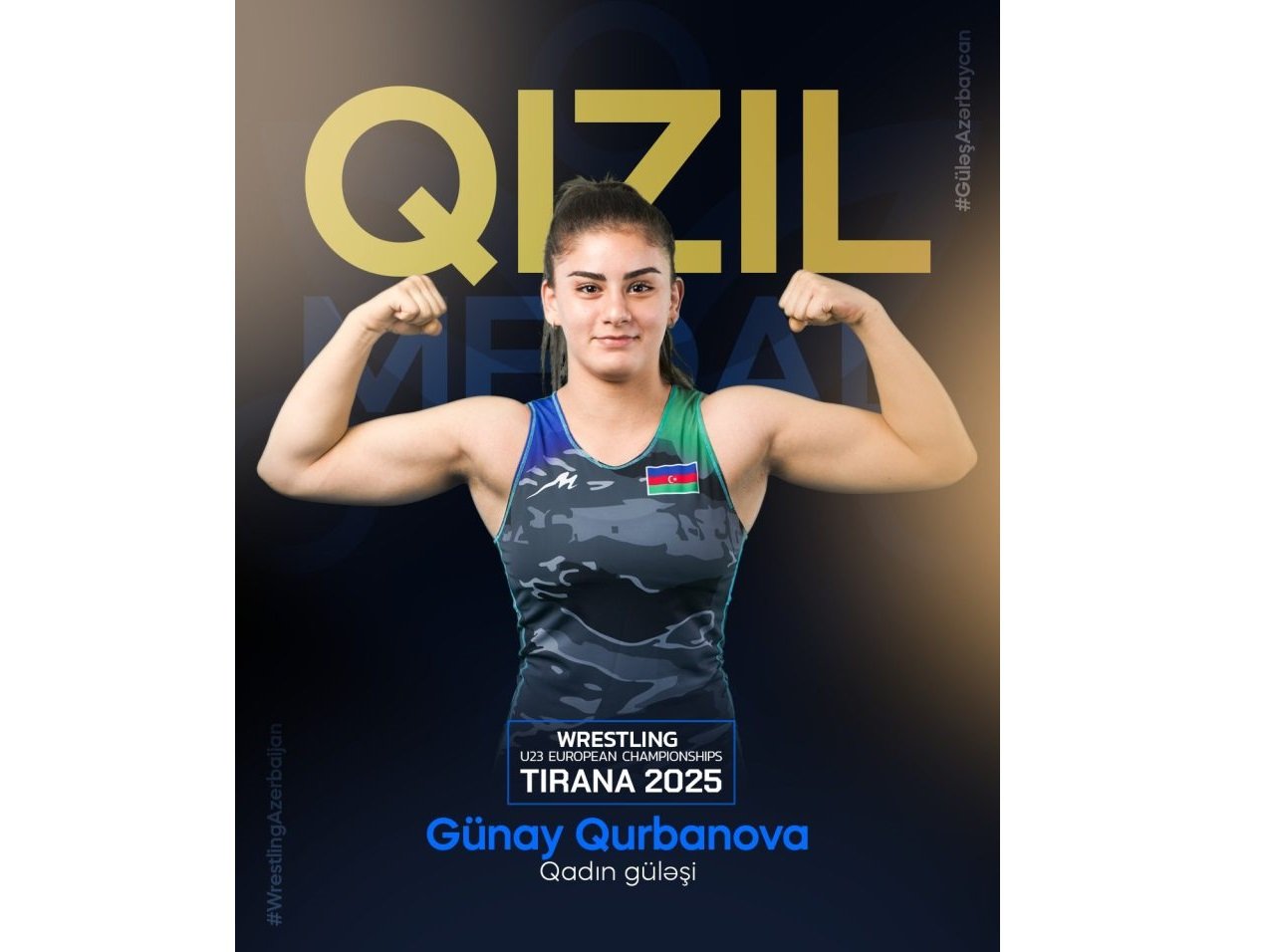 Günay Qurbanova (59 kq) isə finalda italiyalı Aurora Russoyla qarşılaşıb. U20 Avropa və dünya çempionu ünvanına sahib olan rəqib güləşçiylə görüşə daha inamlı başlayan Qurbanova ilk hissədə qazandığı 4 xalla qələbəni təmin edib. İkinci hissədə 4:0 hesabı dəyişməyib və 17 yaşlı Günay debüt etdiyi U23 Avropa çempionatının qalibi olub.