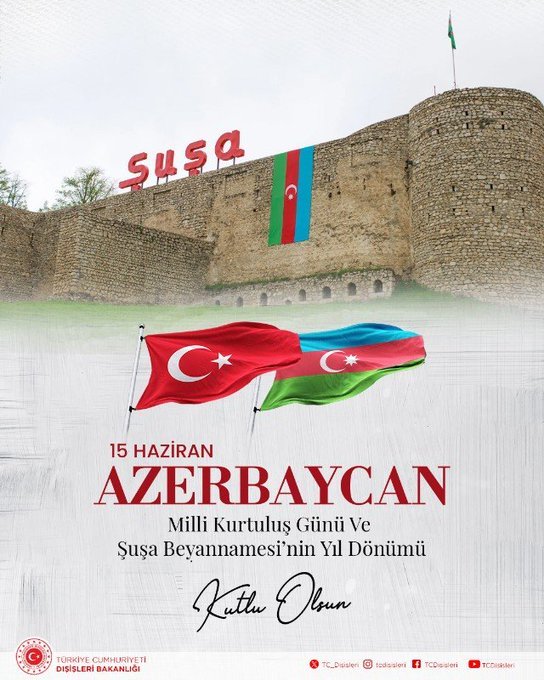 Türkiyə Xarici İşlər Nazirliyi (XİN) Azərbaycan xalqını Milli Qurtuluş Günü münasibətilə təbrik edib.