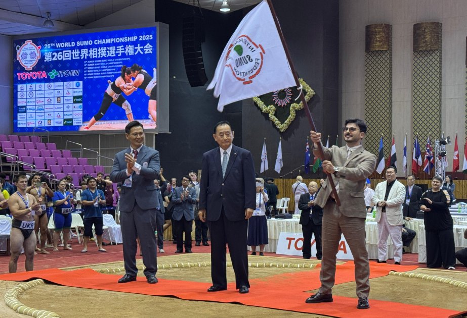 Tailandın paytaxtı Bankokda keçirilən sumo üzrə dünya çempionatında yarışın rəsmi bayrağı Azərbaycana təqdim edilib.