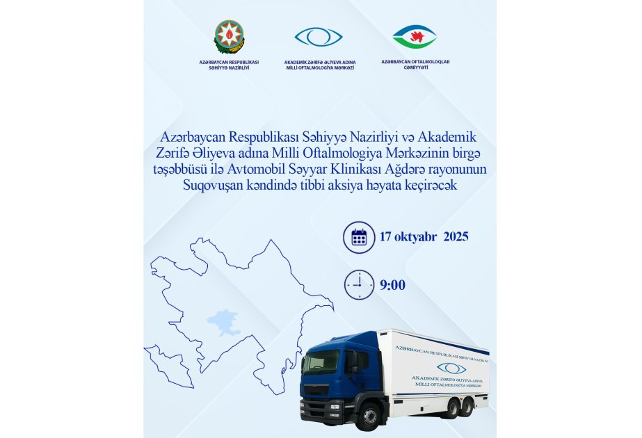 Azərbaycan Respublikası Səhiyyə Nazirliyi və Akademik Zərifə Əliyeva adına Milli Oftalmologiya Mərkəzinin birgə təşkilatçılığı ilə oktyabrın 17-də Suqovuşan kəndində, azad olunmuş ərazilərdə tibbi aksiya keçiriləcək.