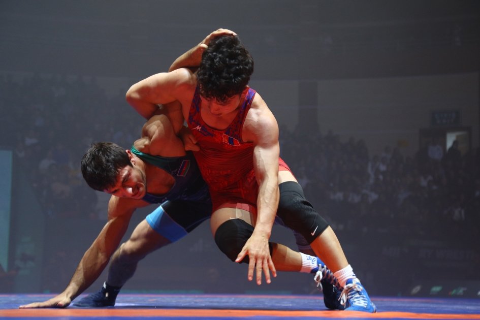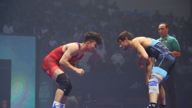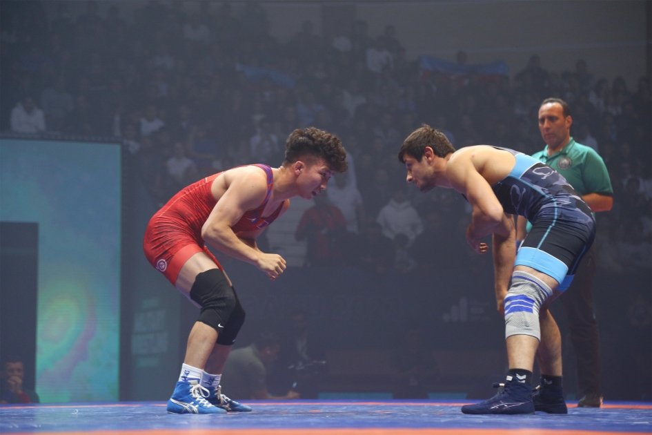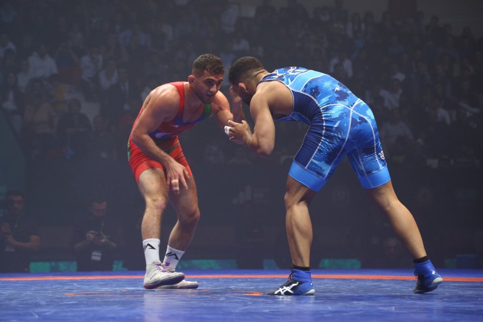 AZƏRTAC xəbər verir ki, 74 kiloqram çəki dərəcəsində mübarizə aparan Turan Bayramov final görüşündə İran pəhləvanını böyük xal fərqi ilə məğlub edərək dünya çempionu olub.