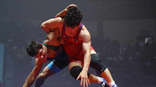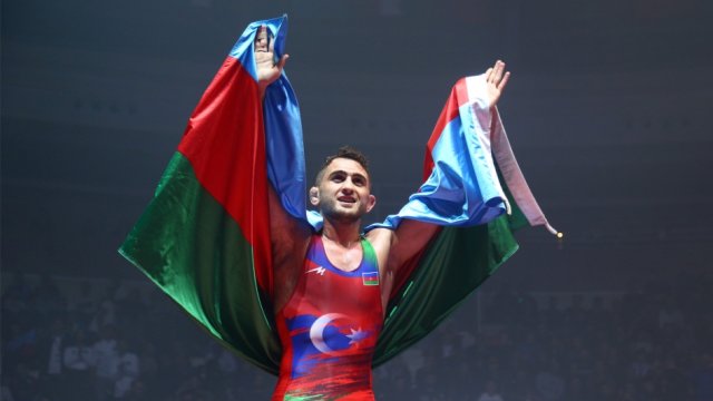 AZƏRTAC xəbər verir ki, 70 kiloqram çəki dərəcəsində mübarizə aparan üçqat dünya çempionu final görüşündə iranlı rəqibini məğlubiyyətə uğradaraq fəxri kürsünün ən yüksək pilləsinə qalxıb.