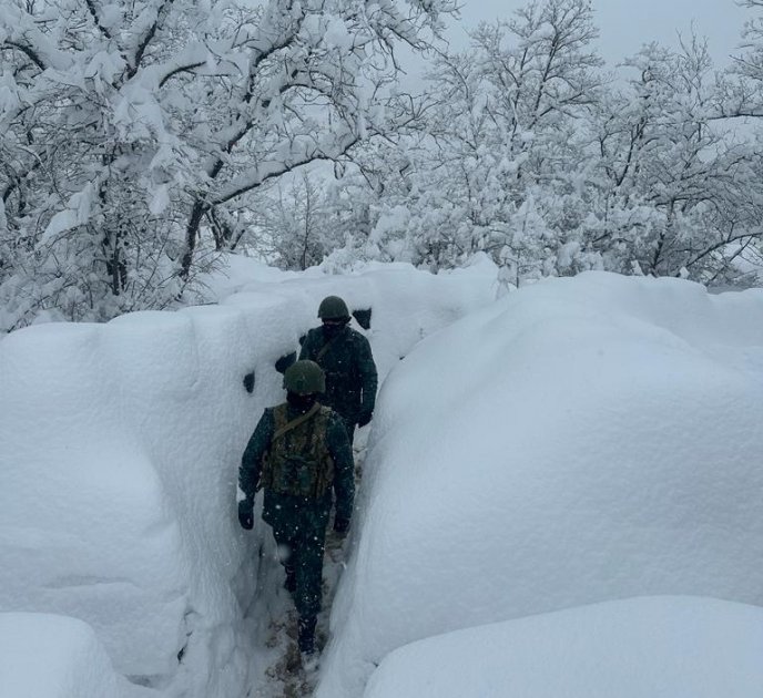 AZƏRTAC xəbər verir ki, havanın necə olmasından asılı olmayaraq, sərhəd keşikçiləri həmişə ayıq-sayıqdırlar. Buz bağlayan zirvələr, iliyə işləyən sazaqlı hava şəraiti, qarla örtülü səngərlər onların bir an da olsa sayıqlığına xələl gətirə bilməz. Əksinə belə havalarda daha çox diqqət və fədakarlıq tələb olunur.