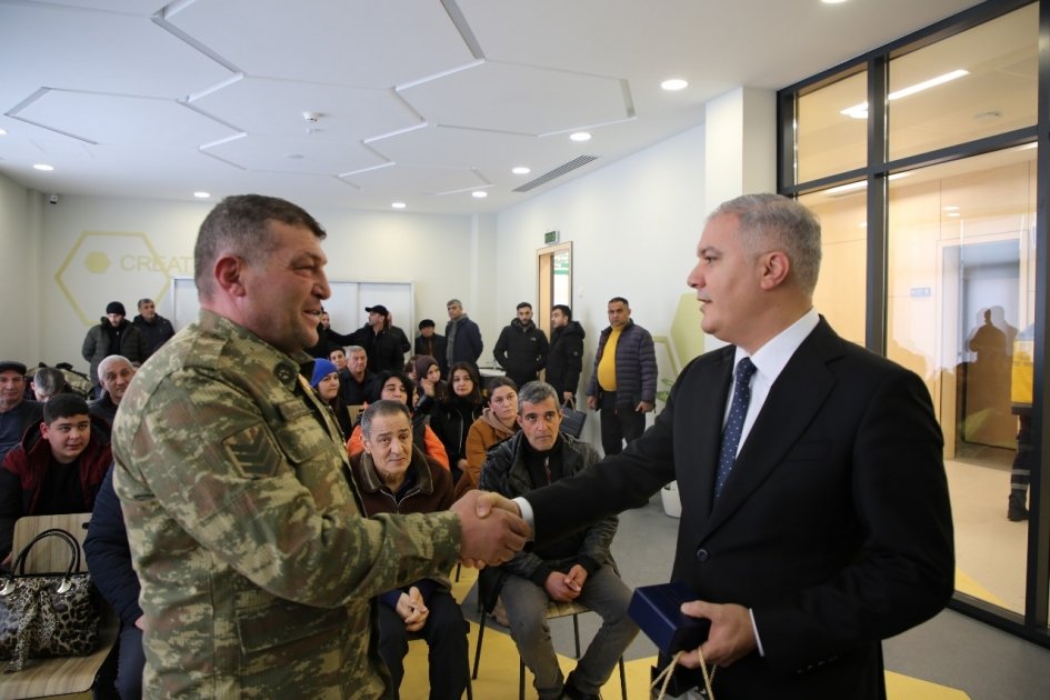 Ailələr qarşılandıqdan sonra onlara mənzillərinin açarları təqdim olunub.