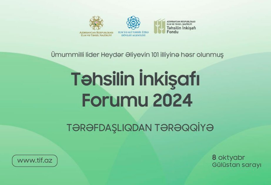 Oktyabrın 8-də “Gülüstan” sarayında 300 nəfər dövlət və özəl sektor nümayəndəsinin iştirakı ilə “Tərəfdaşlıqdan tərəqqiyə” devizi ilə Təhsilin İnkişafı Forumu keçiriləcək.