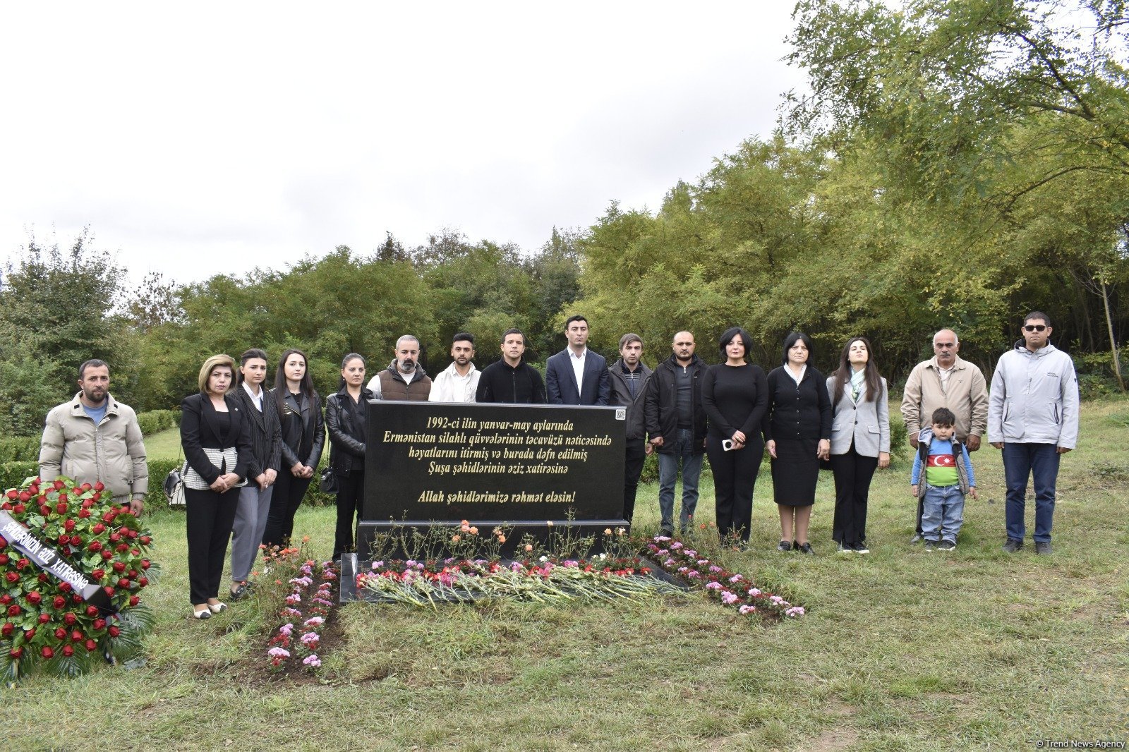 Mərasim iştirakçıları Şuşa şəhərindəki Şəhidlər Xiyabanında xatirə lövhəsinin önünə gül dəstələri qoyublar.
