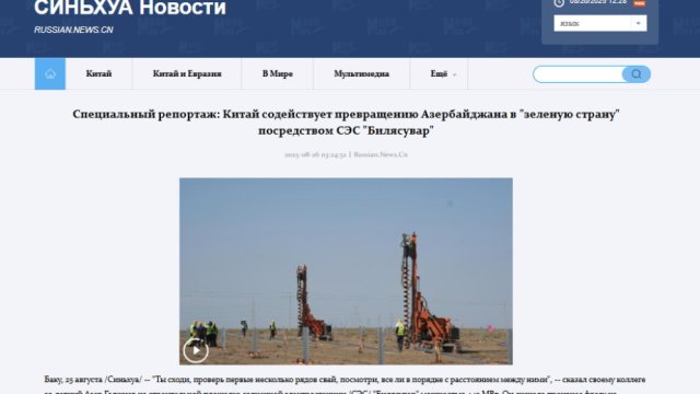 Sinxua dövlət agentliyi: Biləsuvar GES Çin-Azərbaycan əməkdaşlığının daha bir nümunəsidir