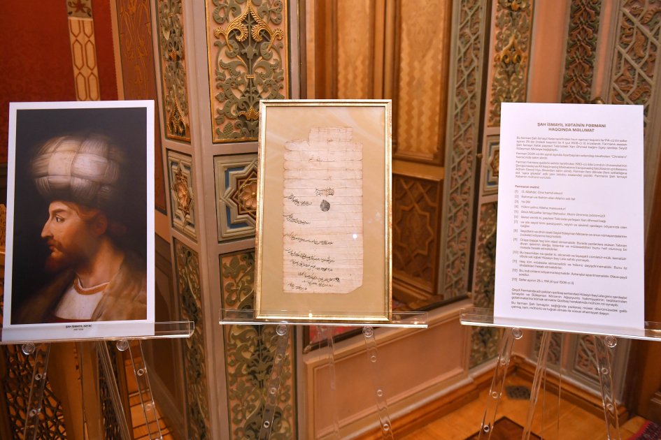 Milli Azərbaycan Tarixi Muzeyində Səfəvilər dövlətinin banisi və ilk hökmdarı Şah İsmayıl Xətainin 1508-ci ilə aid fərmanının təqdimatı keçirilib.
