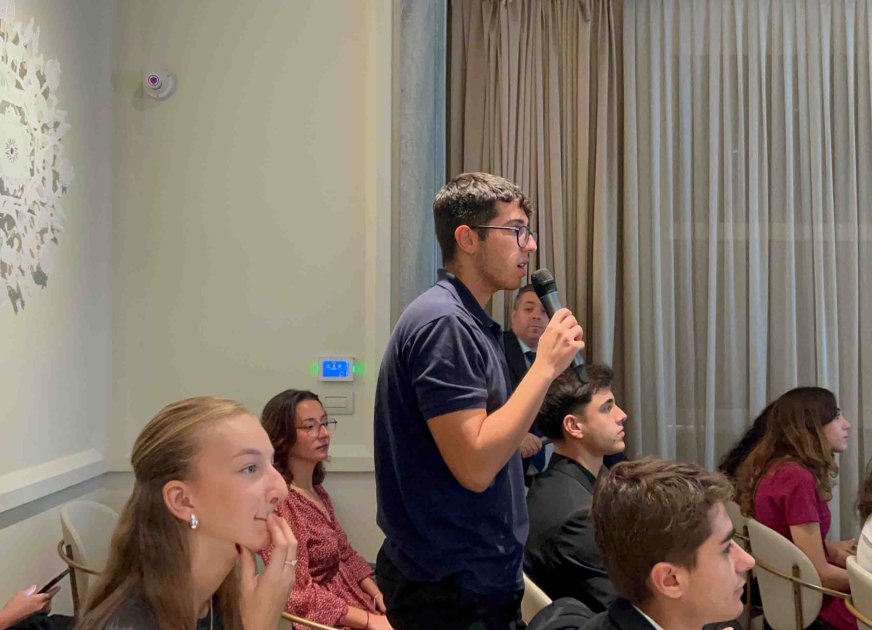 AZƏRTAC xəbər verir ki, görüşdə Azərbaycanın İtaliyadakı səfiri Rəşad Aslanov tələbələrə ölkəmizin zəngin tarixi, coğrafi və geosiyasi mövqeyi, postmünaqişə dövründə regionda yaratdığı yeni reallıqlar, xarici siyasətinin prioritetləri, eləcə də həyata keçirdiyi mühüm enerji layihələri barədə təqdimatla çıxış edib.