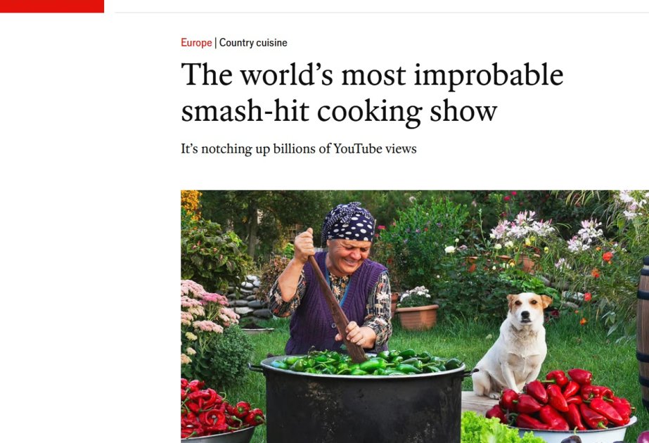 Dünyaca məşhur “Economist” nəşrinin bizim “Kənd Həyatı” adlı yutub kanalımız barədə məqalə hazırladığını oğlumdan öyrəndim. Bu, bizim üçün böyük uğurdur. Kanalımız haqqında, yurdumuz haqqında xoş sözlər yazılıb. Belə xəbərlərin yazılması Azərbaycan mətbəxinin, adət-ənənələrinin təbliği üçün çox əhəmiyyətlidir.