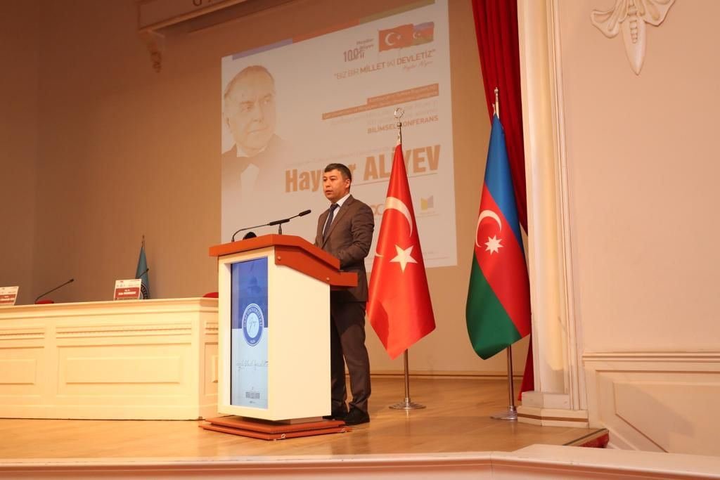 Azərbaycan Respublikasının Türkiyə Respublikasındakı Səfiri Rəşad Məmmədovun salamlarını çatdıran Səfirliyin birinci katibi İ.Quliyev qardaş ölkələrin universitetləri arasında əməkdaşlığın inkişafından bəhs edib və MDU-nun bu sahədə aktivliyini vurğulayıb. Dünya şöhrətli siyasətçi, ulu öndər Heydər Əliyevin titanik və misilsiz fəaliyyətləri ilə xalqımızın xilaskar lideri və ümummilli lideri zirvəsinə yüksəldiyini qeyd edən İ.Quliyev hazırda dahi şəxsiyyətin siyasi kursunu layiqli şəkildə davam etdirən Prezident İlham Əliyevin rəhbərliyi ilə Azərbaycanın nəhəng uğurlara və əzəmətli qələbələrə imza atdığını bildirib. Ümummilli liderin zəngin irsinin öyrənilməsi və təbliğinin önəmindən bəhs edən İ.Quliyev “Heydər Əliyev İli” çərçivəsində Səfirliyin bir çox tədbirlərə dəstək göstərdiyini qeyd edib. Hər iki universitetin bu istiqamətdə fəaliyyətlərə töhfələrinə görə təşəkkürünü bildirən İ.Quliyev konfransın işinə uğurlar arzulayıb.