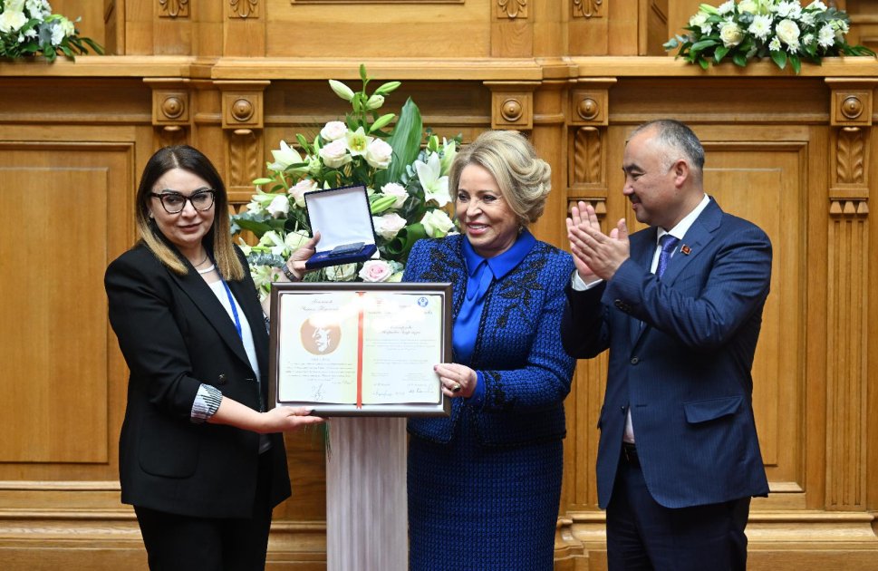 Mükafatı Joqorku Keneşin (Qırğız Respublikasının parlamenti) sədri Nurlanbek Şakiyev və MDB PA Şurasının sədri, Rusiya Federal Məclisi Federasiya Şurasının sədri Valentina Matviyenko təqdim ediblər.