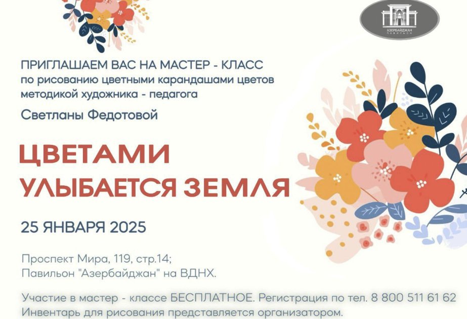 Moskvada XTNS-in “Azərbaycan” pavilyonunda yanvarın 25-də rəsm üzrə “Torpaq çiçəklərlə gülümsəyir” adlı ustad dərsi olacaq.