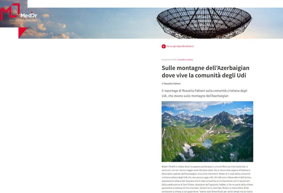 İtaliyanın “Med-Or” Fondunun saytında Azərbaycanda yaşayan Alban-Udi xristian dini icması haqqında məqalə dərc olunub.