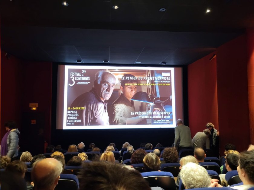 Parisin “L’Arlequin” kino zalında 2024-cü ildə Nantda keçirilmiş “3 Qitə Festivalı”nın (Festival des 3 Continents) mükafatlarına layiq görülmüş azərbaycanlı gənc rejissor Orxan Ağazadənin “Kinomexanikin qayıdışı” filmi nümayiş olunub.