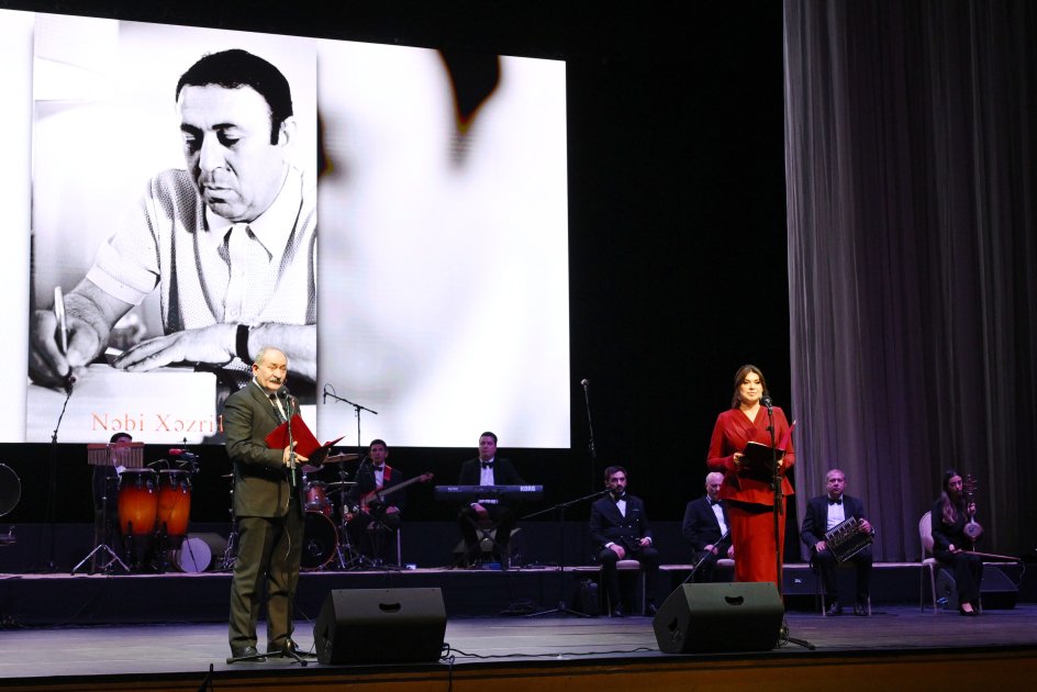 Heydər Əliyev Sarayında Xalq şairi Nəbi Xəzrinin 100 illiyi münasibətilə reallaşan tədbirlər çərçivəsində “Dəniz, göy, məhəbbət” adlı bədii-musiqili gecə keçirilib.