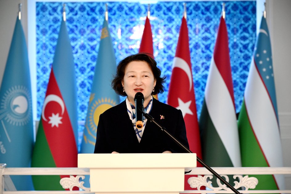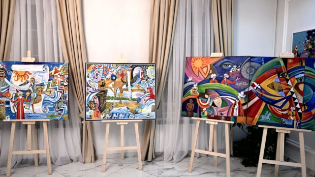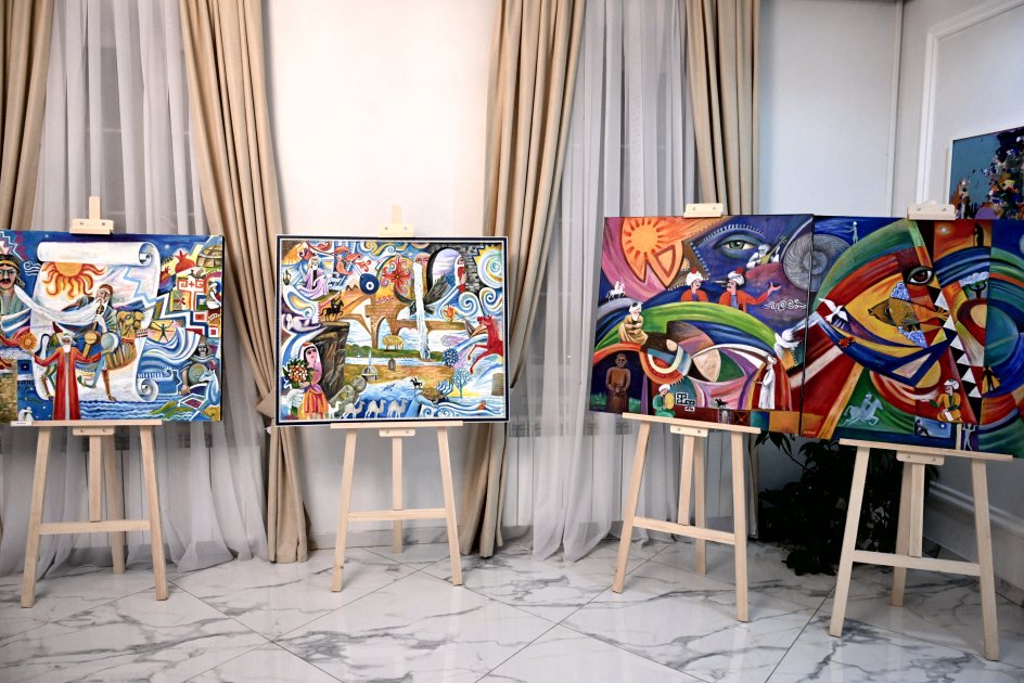 AZƏRTAC xəbər verir ki, tədbirdə çıxış edən Fondun prezidenti Aktotı Raimkulova sərgidə yer alan əsərlərin çoxfiqurlu və poetik kompozisiyaları ilə türk xalqlarının ruhunu, ənənələrini və yaşayış tərzini əks etdirdiyini bildirib.