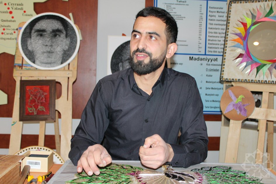 “İstifadə etdiyim paslanmayan yüngül çəkicləri, rəngli məftilləri, mismarları və ipləri Türkiyədən onlayn sifarişlə alıram. Təsvirləri həm iplə, həm də məftillə işləmək olur. Mən daha çox paslanmayan rəngli məftilə üstünlük verirəm. Portretləri isə saplarla işləyirəm. Hazırladığım əl işləri içərində şəhidlərimizin portretləri, həmçinin vətənpərvərlik mövzusunda təsvirlər, eləcə də təbiət mənzərələri var. Filoqrafiyaya hobbi kimi yanaşıram və bu işdən gəlir əldə etmirəm”, - deyə Dəyanət Orucov əlavə edib.