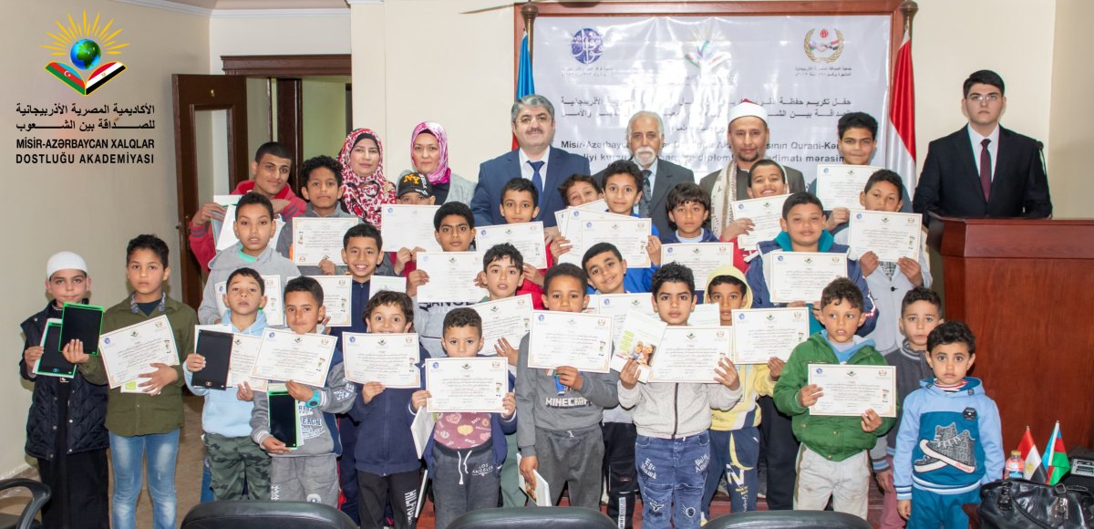 Qahirədə yeni təsis edilmiş Misir-Azərbaycan Xalqlar Dostluğu Akademiyasında müxtəlif fənlər üzrə keçirilən kurslarda ödənişsiz əsasda təhsil alan uşaqlara diplomların təqdim edilməsi mərasimi keçirilib.