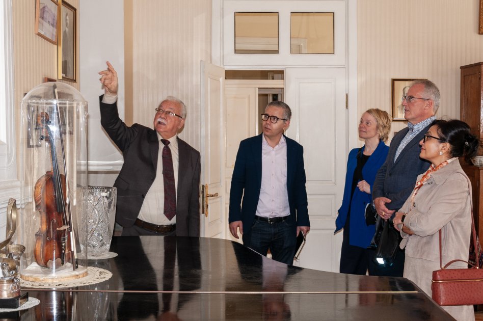 Yaradıcı heyət səfər çərçivəsində Üzeyir Hacıbəylinin ev-muzeyini ziyarət ediblər. Xalq artisti, bəstəkar Sərdar Fərəcov onlara muzeyin tarixi və ekspozisiyaları haqqında geniş məlumat verib. Sərdar Fərəcovun rəhbərliyi ilə qonaqlar dahi bəstəkarın şəxsi əşyaları, musiqi alətləri və əlyazmaları ilə yaxından tanış olublar.