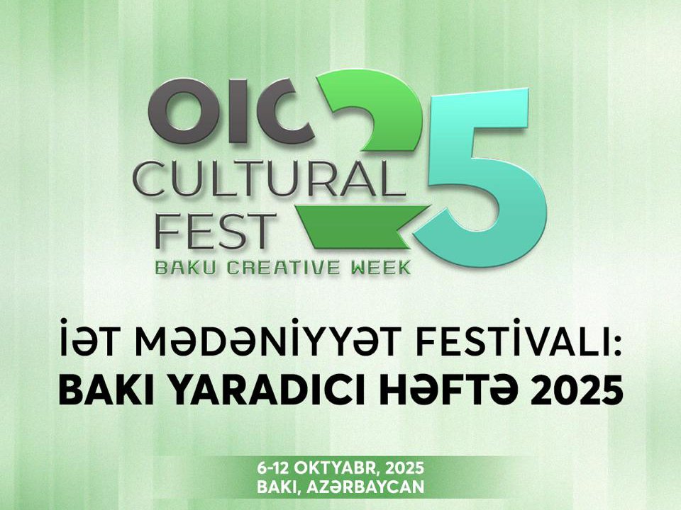 6-12 oktyabr tarixlərində İslam Əməkdaşlıq Təşkilatının (İƏT) və Azərbaycan Respublikası Mədəniyyət Nazirliyinin təşkilatçılığı ilə paytaxtımızda “İƏT Mədəniyyət Festivalı: Bakı Yaradıcı Həftə – 2025” keçiriləcək.