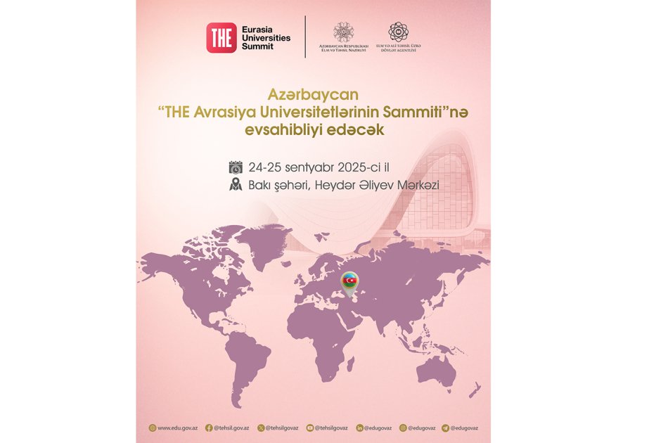 Sentyabrın 24-25-də Bakıda “Times Higher Education” (THE) beynəlxalq reytinq agentliyi tərəfindən Avrasiya Universitetləri Sammiti keçiriləcək.