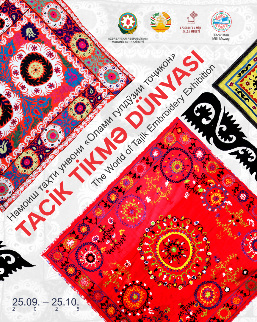 Sentyabrın 25-də Azərbaycan Milli Xalça Muzeyində Tacikistan Milli Muzeyi ilə birgə təşkil olunan “Tacik tikmə dünyası” adlı sərgi açılacaq.