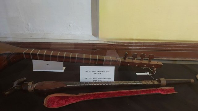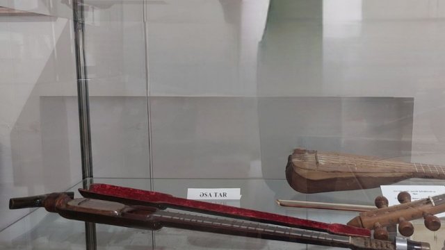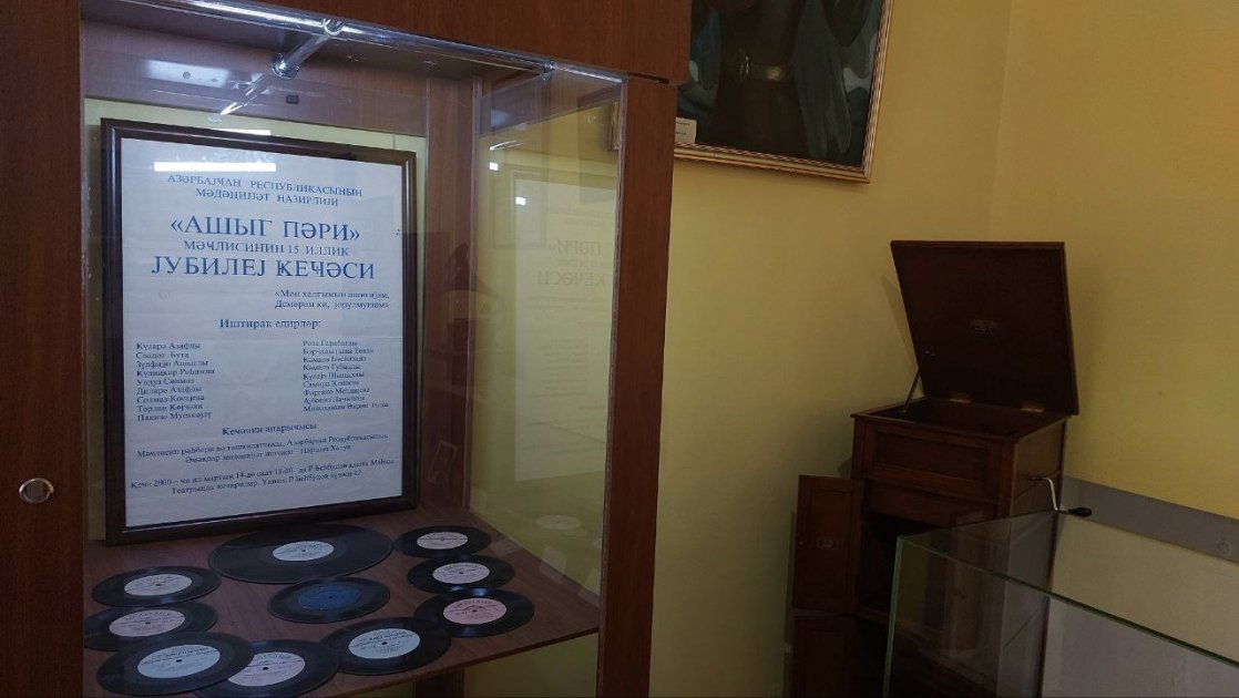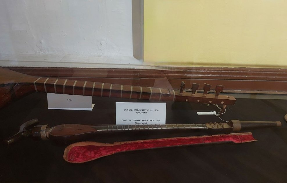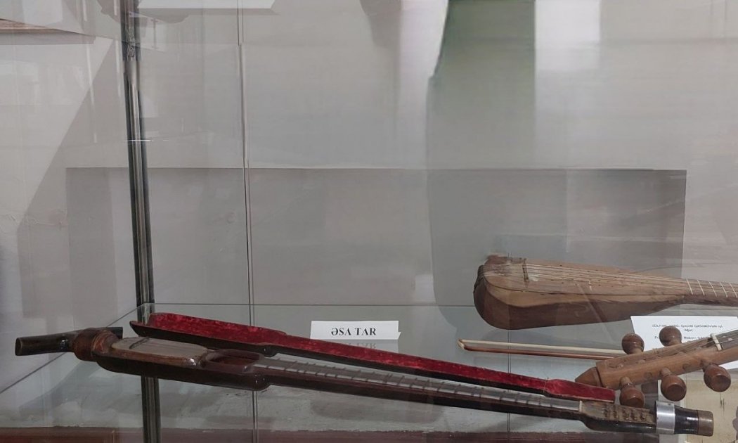 Muzeyə daxil oluram. Elə bu an otaqdakı səssizliyi pozan milli musiqimizin həzin səsi məndə xoş hisslər yaradır. Musiqinin fonunda burada nümayiş olunan eksponatlarla yaxından tanış oluram. Əhməd Bakıxanovun kolleksiyasına aid olan əsa-tar adlı musiqi aləti diqqətimi cəlb edir. Belə ki, Ə.Bakıxanov xaricdə olarkən gördüyü əsa formasında olan skripka alətindən ilhamlanıb. O, vətənə geri qayıdandan sonra bu ideyanı irəli sürüb və bundan sonra əsa-tar və əsa-saz musiqi alətləri hazırlanıb. Böyük həcmi ilə müasir tarlardan fərqlənən Şiraz tarından söz açan həmsöhbətim deyir ki, bu musiqi aləti əvvəllər diz üzərində ifa olunub, lakin daha sonra Sadıqcan ləqəbi ilə tanınan Azərbaycan tarzəni Mirzə Sadıq onu təkmilləşdirib və tar artıq sinə üzərində ifa olunmağa başlanıb. Bundan başqa musiqişünas Məcnun Kərimlinin bərpa etdiyi orta əsrlərdə ifa olunan xalq çalğı alətləri də burada sərgilənir.