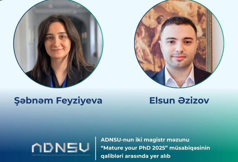 Azərbaycan Dövlət Neft və Sənaye Universitetinin (ADNSU) nəzdində fəaliyyət göstərən Azərbaycan–Fransız Universitetinin (UFAZ) fiziki kimya və kimya mühəndisliyi ixtisası üzrə magistr məzunları Şəbnəm Feyziyeva və Elsun Əzizov Fransada keçirilən “Mature your PhD 2025” beynəlxalq müsabiqəsində qalib olublar. Hər iki qalib hazırda Azərbaycan Respublikasının xaricdə təhsil üzrə Dövlət Proqramı çərçivəsində Fransanın Strasburq Universitetində doktorantura təhsili alır.