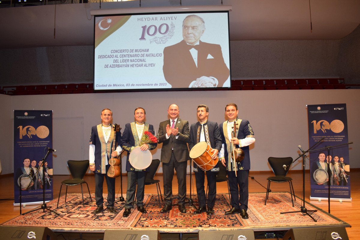“Heydər Əliyev İli” ilə əlaqədar keçirilən silsilə tədbirlər çərçivəsində Ümummilli Lider Heydər Əliyevin 100 illiyi münasibətilə Mexiko şəhərində yerləşən Milli İncəsənət Mərkəzinin Blas Qalindo Auditoriyasında Azərbaycan muğamı konserti keçirilib.