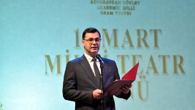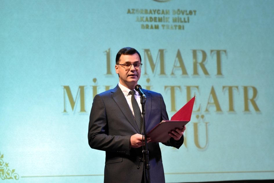 Mərasimdə mədəniyyət nazirinin müşaviri Oleq Əmirbəyov nazir Adil Kərimlinin Milli Teatr Günü ilə bağlı təbrik məktubunu oxuyub.