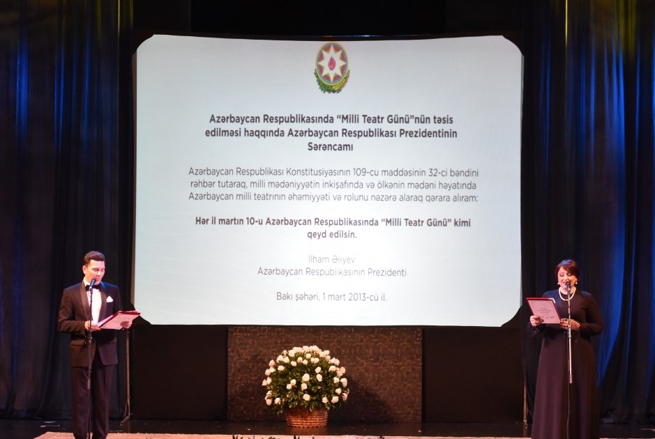 AZƏRTAC xəbər verir ki, 10 Mart - Milli Teatr Gününə həsr olunan mərasimdə Azərbaycan teatrının tarixi və bu günü haqqında videoçarx nümayiş edilib.