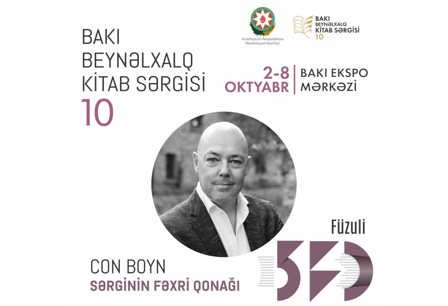 Dünyaşöhrətli irlandiyalı yazıçı Con Boyn 10-cu Bakı Beynəlxalq Kitab Sərgisinin fəxri qonağı olacaq.