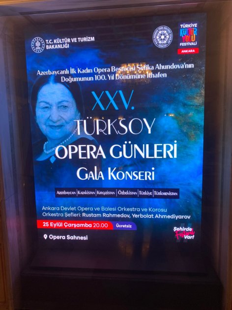 Sentyabrın 25-də Ankara Dövlət Opera və Balet Teatrın səhnəsində Şərqin ilk qadın bəstəkarı Şəfiqə Axundovanın anadan olmasının 100 illiyinə həsr olunmuş qala-konsert keçirilib.