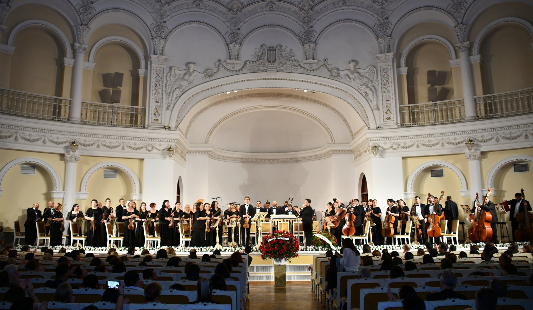 Trend xəbər verir ki, dirijor Azərbaycan Respublikasının Əməkdar artisti Əyyub Quliyevin rəhbərliyi, Ü.Hacıbəyli adına Azərbaycan Dövlət Simfonik Orkestrinin müşayiəti ilə solistlər - Azərbaycan Respublikasının Xalq artisti Murad Adıgözəl-zadə (piano), Azərbaycan Respublikasının Əməkdar artisti Elvin Hoca Qəniyev (violin), Dmitri Sitkovetski (violin, Böyük Britaniya) öz bənzərsiz ifalarını dinləyicilərə təqdim edib.