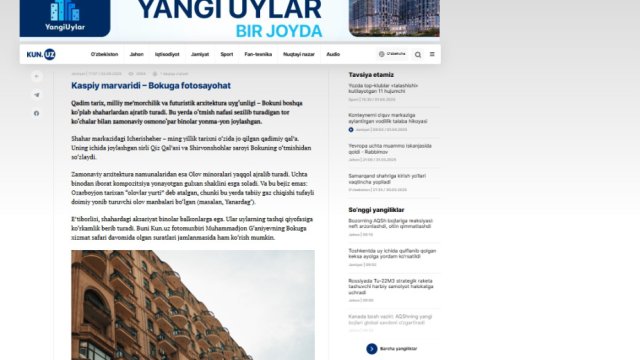 Özbəkistan portalı Bakıya həsr olunmuş məqalə yayımlayıb