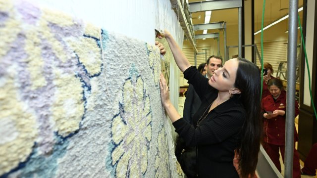 Heydər Əliyev Fondunun vitse-prezidenti Leyla Əliyeva “Azərxalça” ASC-nin Şuşa məscidi üçün hazırladığı növbəti xalçalarının kəsim mərasimində iştirak edib