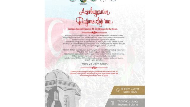 Ankarada Azərbaycanın Müstəqilliyinin Bərpası Günü qeyd olunacaq
