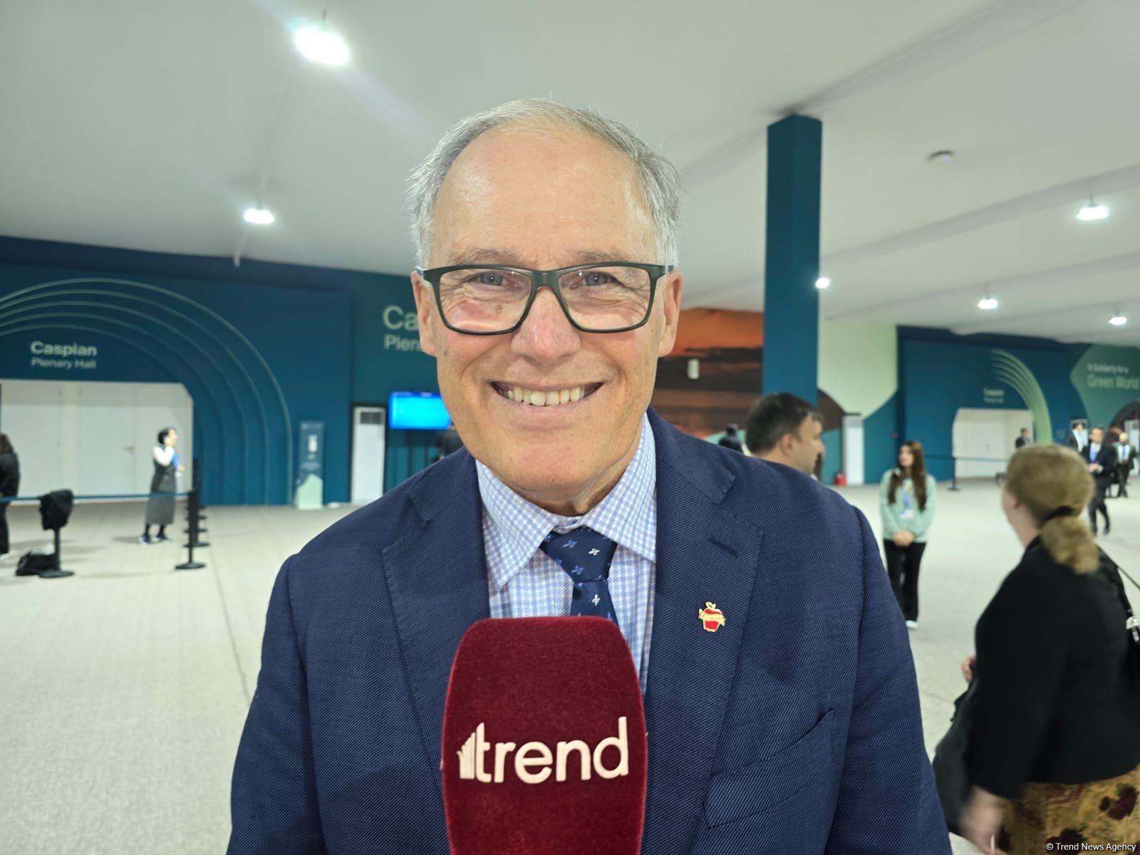 Vaşinqton ştatını təmsil edirəm və biz iqlim dəyişikliyi ilə mübarizədə tamamilə iştirak edirik. Azərbaycan da daxil olmaqla, iqlim dəyişikliyinə qalib gəlmək üçün bütün tərəflərlə birgə işləyəcəyik".