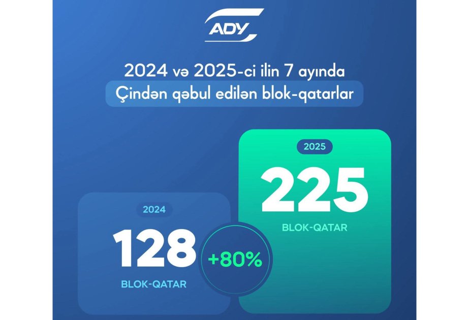 “Azərbaycan Dəmir Yolları” (ADY) QSC bu ilin 7 ayı ərzində Çindən 225 blok-qatar qəbul edib.