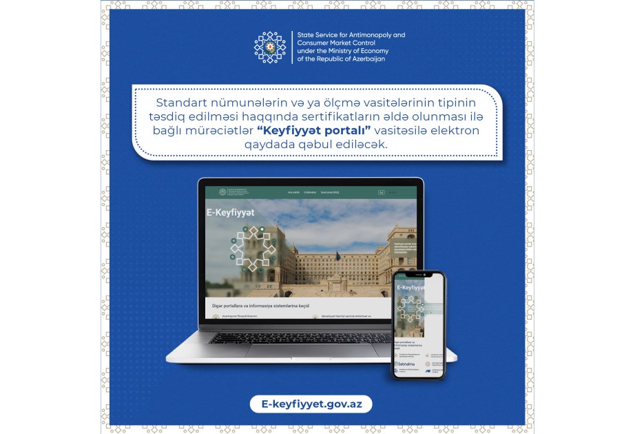 May ayından etibarən isə "Keyfiyyət portalı"na daha bir xidmət əlavə olunur. Belə ki, mayın 1-dən etibarən ölçmə vasitələrinin idxalı və ya dövriyyəsi ilə məşğul olan, o cümlədən onları istismar edən fiziki və hüquqi şəxslər standart nümunələrin və ölçmə vasitələrinin tipinin təsdiqi barədə sertifikatların əldə olunması üçün “Keyfiyyət portalı” vasitəsilə müraciət edə bilərlər.