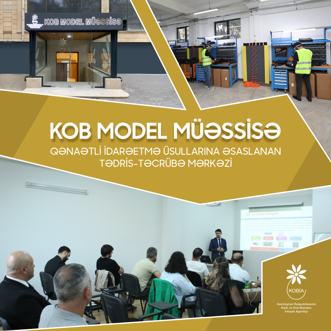 KOB Model Müəssisəsi Kiçik və Orta Biznesin İnkişafı Agentliyi (KOBİA) tərəfindən yaradılıb. Model müəssisənin təlim imkanlarından faydalanan KOB subyektlərinin mühəndisləri və texniki heyəti təlim və təcrübə əsnasında öyrəndiklərini öz şirkətlərində tətbiq etməklə məhsuldarlığın artırılması, vaxta və xərclərə qənaət etmək və s. bacarıqlarını artırırlar. Burada ilkin planlaşdırmadan başlayaraq müəssisənin qurulmasına qədər real biznes prosesini əyani müşahidə etmək mümkündür. KOB Model Müəssisənin təlimçiləri tərəfindən “Kaizen”, “Six Sigma”, “5S”, “ΚΡΙ-ΚΑΙ” və s. kimi strategiya və modellərə dair mövzular tədris olunur və tətbiqi sınaqdan keçirilir.
