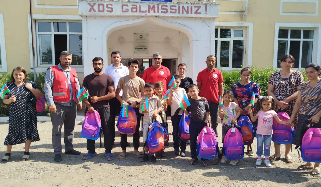 Aksiya çərçivəsində Füzuli və Xocavənd rayonlarının qəsəbə və kəndlərində məskunlaşmış 200 uşağa məktəbli çantası və digər ləvazimatlar hədiyyə edilib.