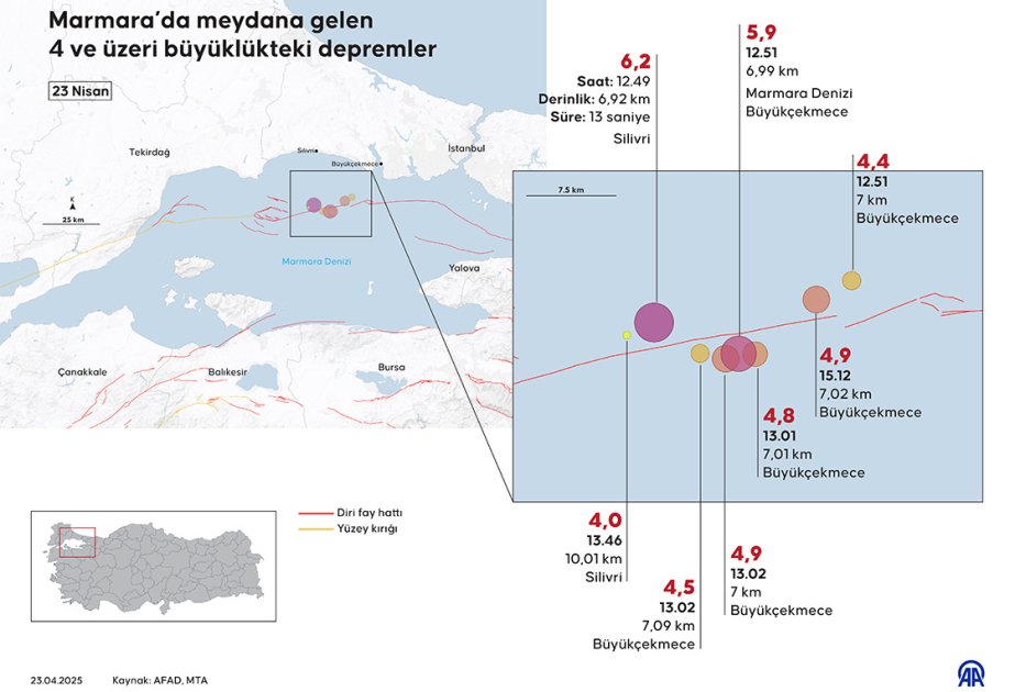 Dünən Mərmərə dənizinin İstanbul sahillərinə yaxın ərazisində baş verən 6,2 bal gücündəki zəlzələdən sonra 266 afterşok qeydə alınıb.